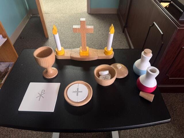Tactile tools like this are great for teaching the faith to little ones. Worship is not just sedentary, but participatory. When they can 'play,' they can find that much more meaning in worship.